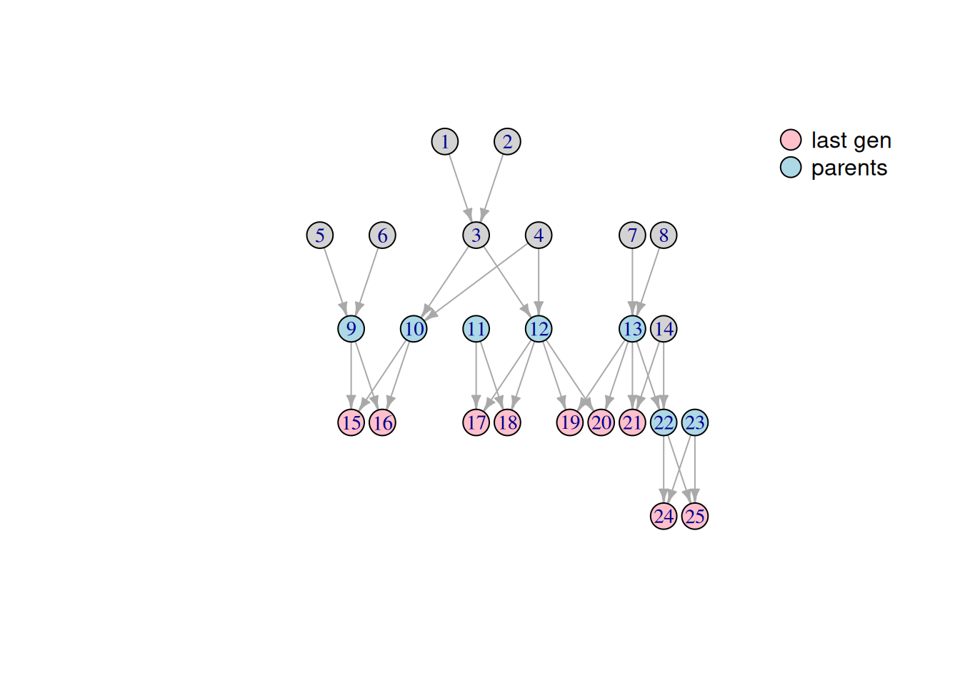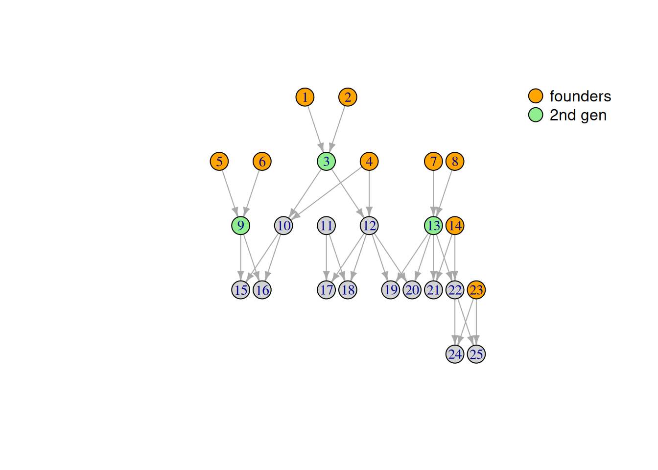 To perform a peeling down you need to indentifie generations. first generation called founders. and the second generation is individuals that both parents are founders. peeling down is the iterative calculation of each \(\textcolor{red}{anterior}\) throught generation, from the oldest to the youngest.